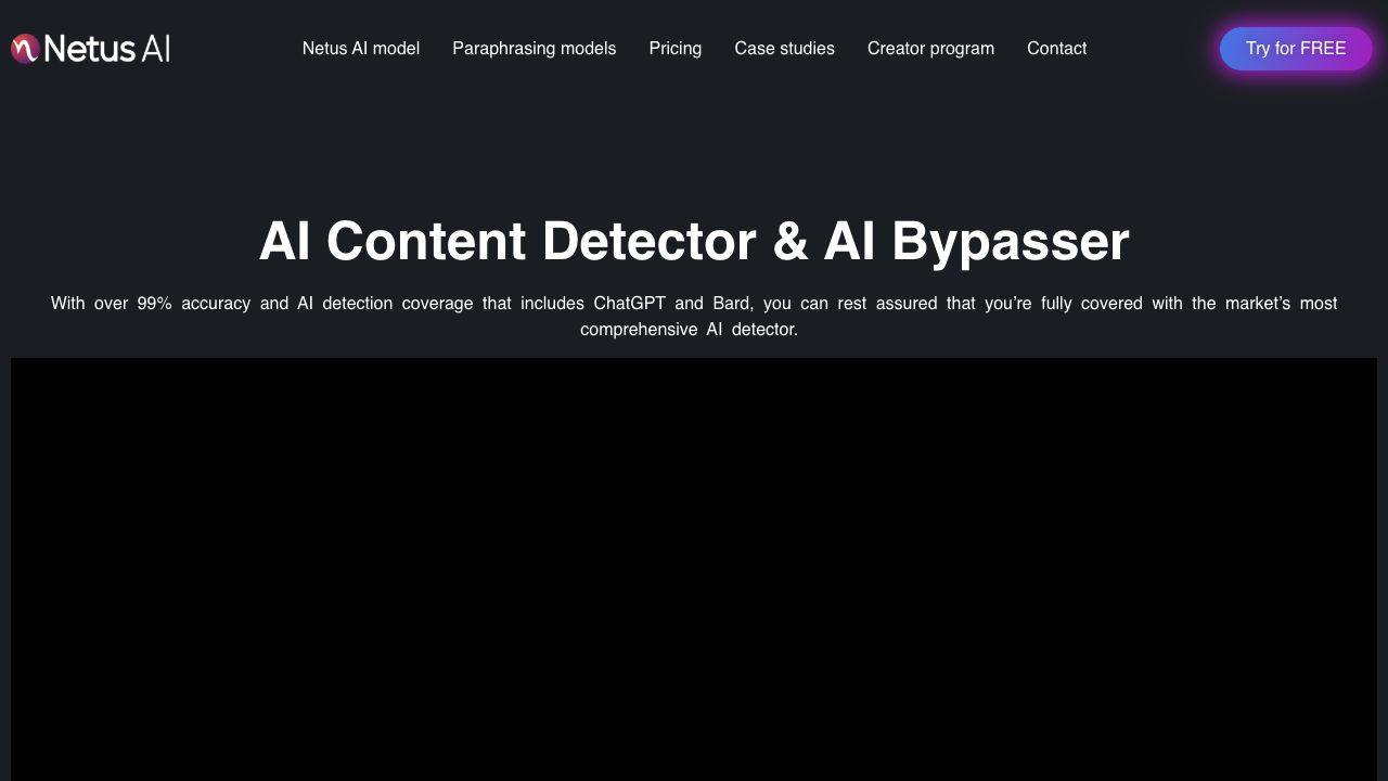 NetusAI is a powerful AI-driven technology designed to help content creators generate unique, high-quality content up to 10x faster than traditional methods. It offers an AI Content Detector & AI Bypasser with over 99% accuracy, including ChatGPT and Bard detection. Netus AI provides custom fine-tuned AI paraphrasing tools, models, and summarization tools suitable for digital marketers, content marketers, founders, SEO specialists, copywriters, and bloggers. It helps avoid plagiarism and bypass AI detection with features like AI to Human converter and Chat GPT watermark remover.