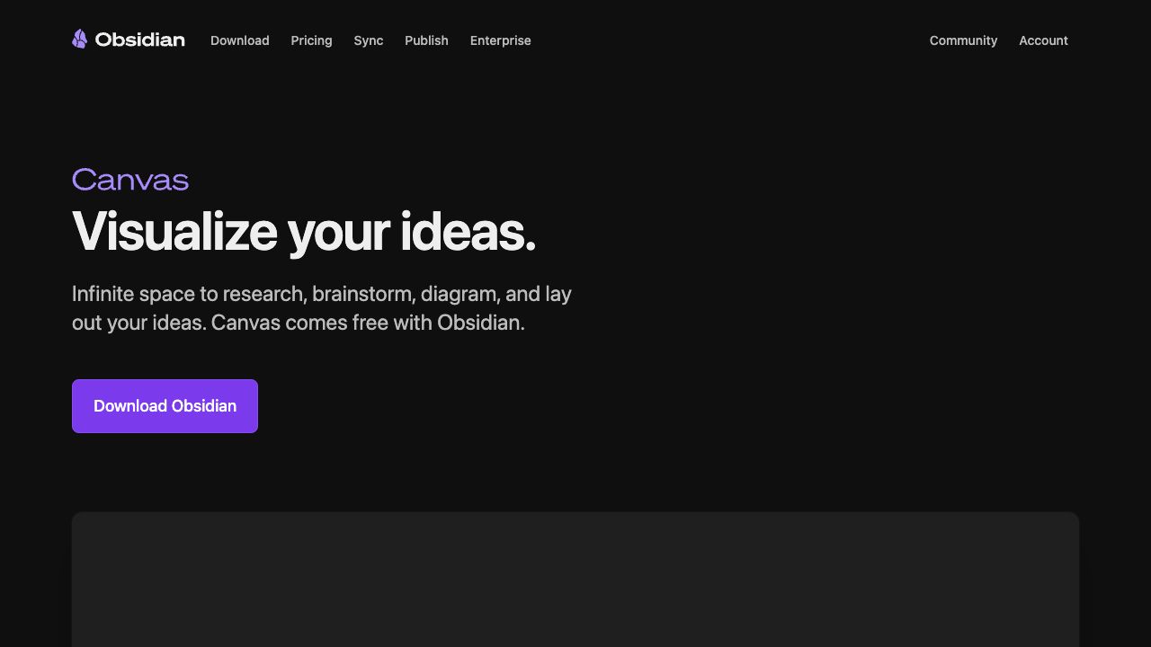 Obsidian Canvas gives you infinite space to research, brainstorm, diagram, and lay out your ideas.