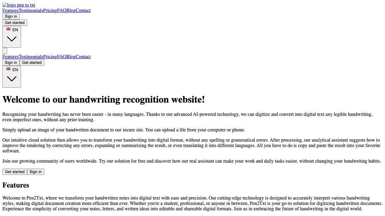 Pen2txt transforms handwritten notes into digital text using HTR technology. It digitizes, edits, and shares handwritten content effortlessly, enhancing productivity and keeping handwritten ideas accessible in the digital age. It combines OCR and AI for accurate, searchable, and editable results, ideal for students, professionals, and anyone digitizing documents.