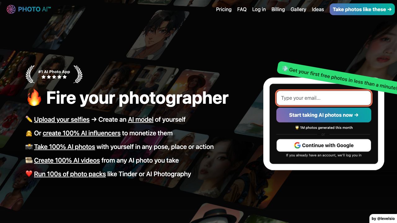 To use Photo AI, upload selfies to create an AI model, or create a 100% AI influencer. Take AI photos in any pose, place, or action, and create AI videos from any AI photo. Users can also run photo packs like Instagram or Old Money.