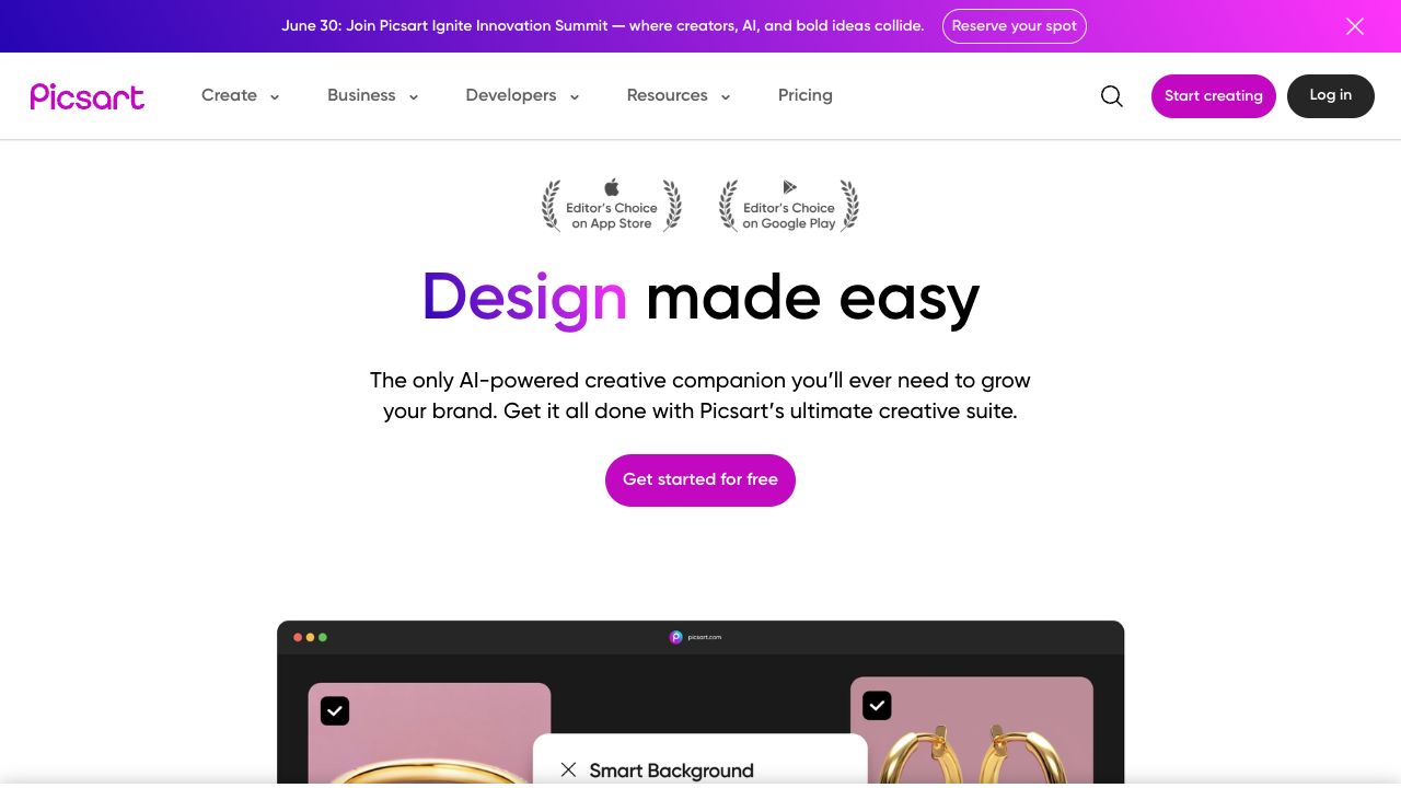 Picsart is an AI-powered creative platform that offers a comprehensive suite of tools for photo and video editing, graphic design, and AI image generation. It caters to individuals and businesses, providing features for creating social media content, marketing materials, and more. With a large community of creators, Picsart emphasizes ease of use and accessibility, making it suitable for both beginners and professionals.