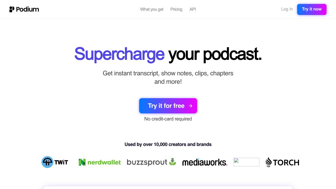 Podium is an AI-powered tool designed to streamline podcast production by generating transcripts, show notes, chapters, highlight clips, and more. It aims to save time and enhance content quality for podcasters of all sizes, offering features like AI copywriting for show notes and articles.