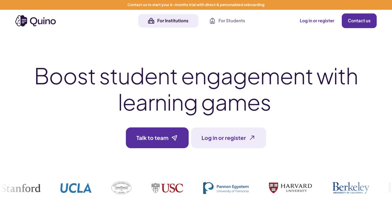 Upload documents, presentations, or videos to Quino. The app turns your sources into learning games and lessons. Review and schedule games for the whole semester.