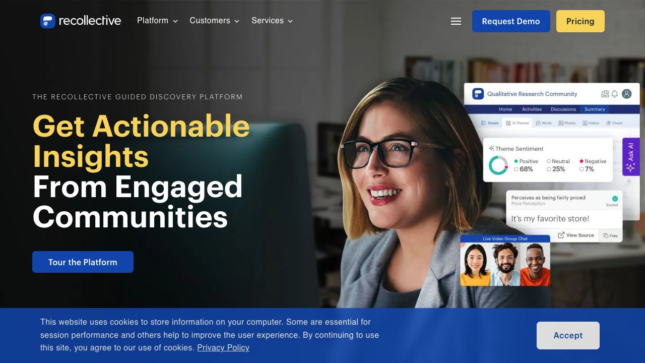 The Recollective Guided Discovery Platform combines the strategic value of engaged communities with the depth of qualitative research, all powered by advanced AI.