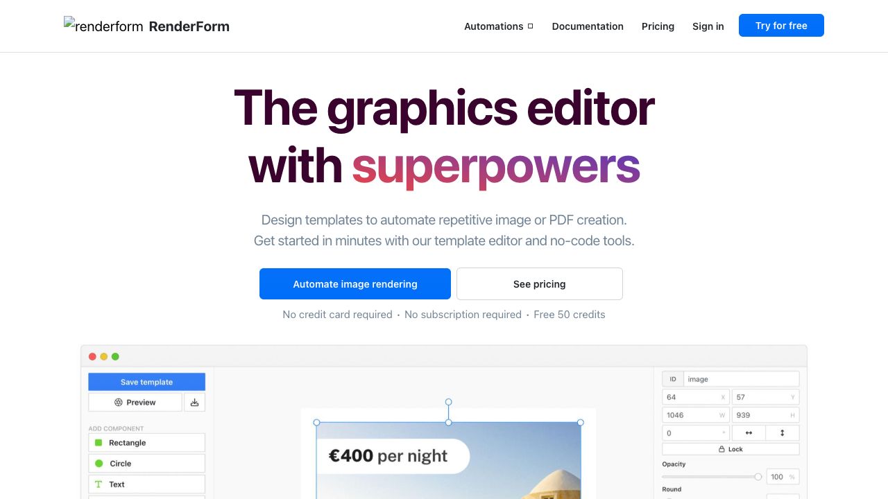 Automate social media banners and marketing visuals with no-code tools, customizable templates, and a powerful REST API. Save time and stay on brand.