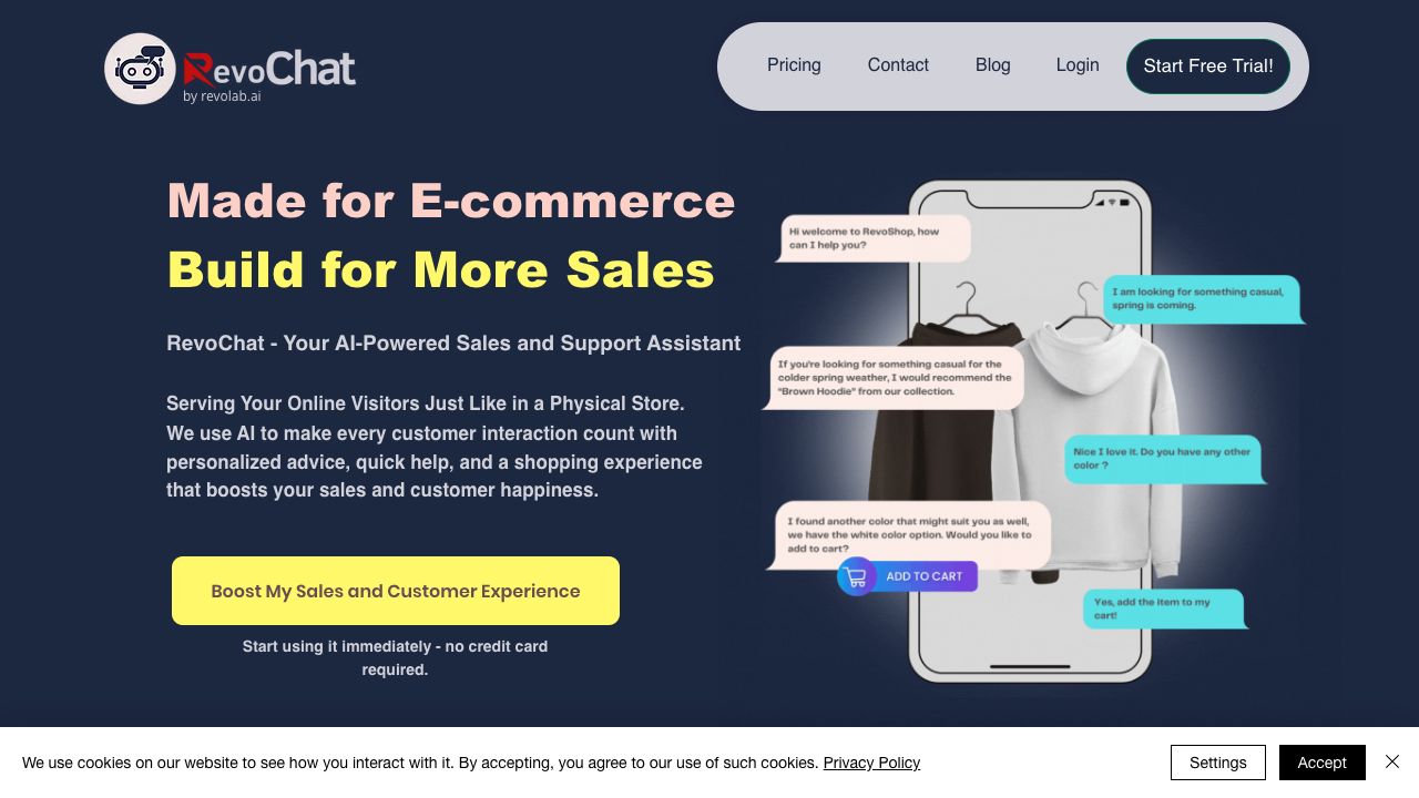 RevoChat is an AI-powered sales and support assistant designed for e-commerce businesses. It integrates with Shopify and WooCommerce to provide 24/7 customer support, personalized product suggestions, and sales assistance. RevoChat aims to enhance customer satisfaction, boost sales, and reduce customer service costs by automating routine inquiries and providing intelligent product recommendations.