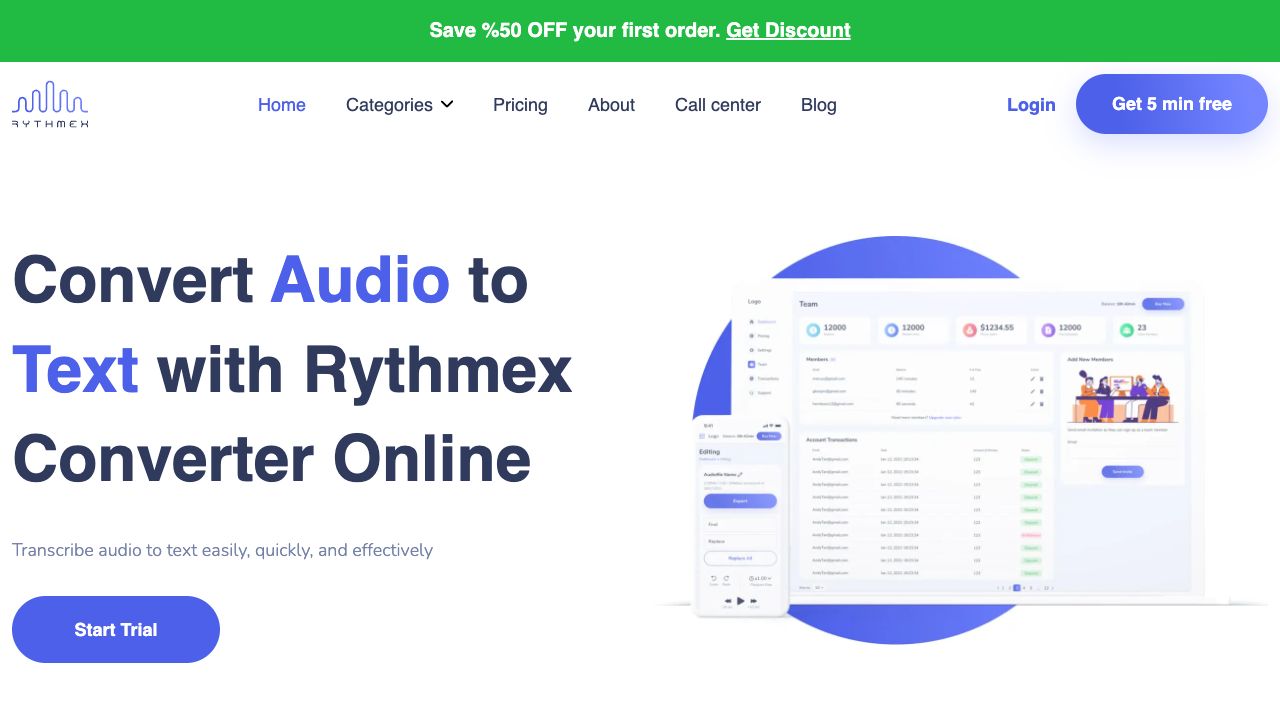 Rythmex is a modern audio to text converter. It can transcribe different formats of audio and video files online with fast extraction to text formats.