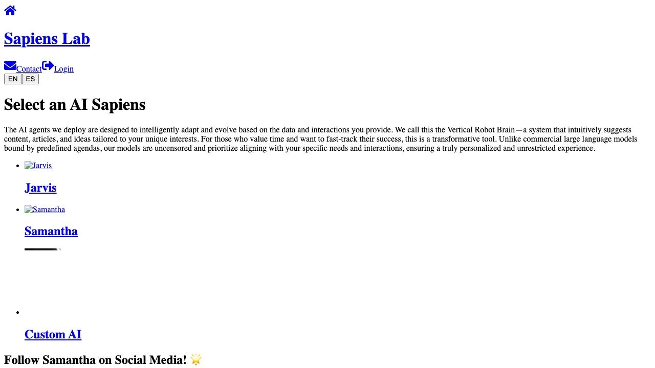 To use Sapiens Lab, you need to enable JavaScript to run the app. Then, you can select an AI Sapiens agent like Jarvis or Samantha, and interact with it to receive personalized content and assistance tailored to your interests and needs.