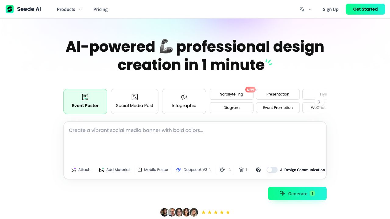Seede AI is an AI-driven design tool that helps users create social media and marketing posts instantly. It requires no software installation and allows users to generate professional designs from text prompts in minutes. It offers a variety of AI-powered templates and features for creating visually appealing content for various platforms.
