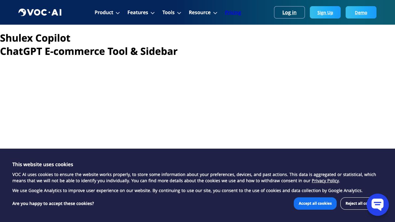 Use Shulex Copilot ChatGPT E-commerce Tool & Sidebar, a browser sidebar that enhances human efficiency and supports major global e-commerce websites. Analyze customer reviews, optimize listings, and streamline customer service with Solvea-AI Agent.