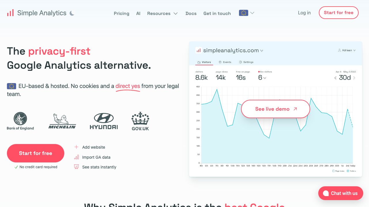 Simple Analytics is the privacy-first Google Analytics alternative that is 100% GDPR compliant. Give us a try!