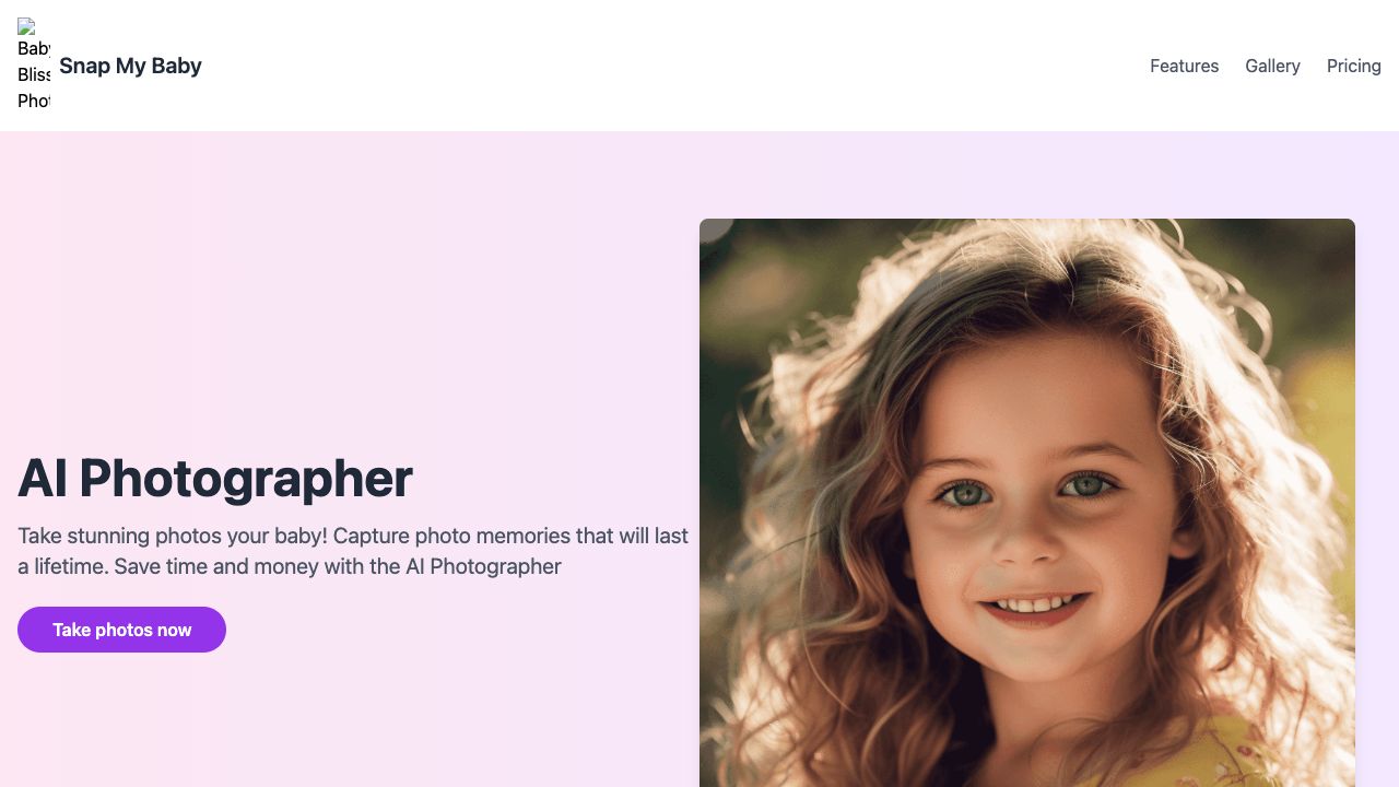 SnapMyBaby is an AI Photographer service designed to help parents capture stunning, high-quality photos of their babies' first moments. It aims to save time and money compared to traditional photography, allowing users to create lasting photo memories without stress.