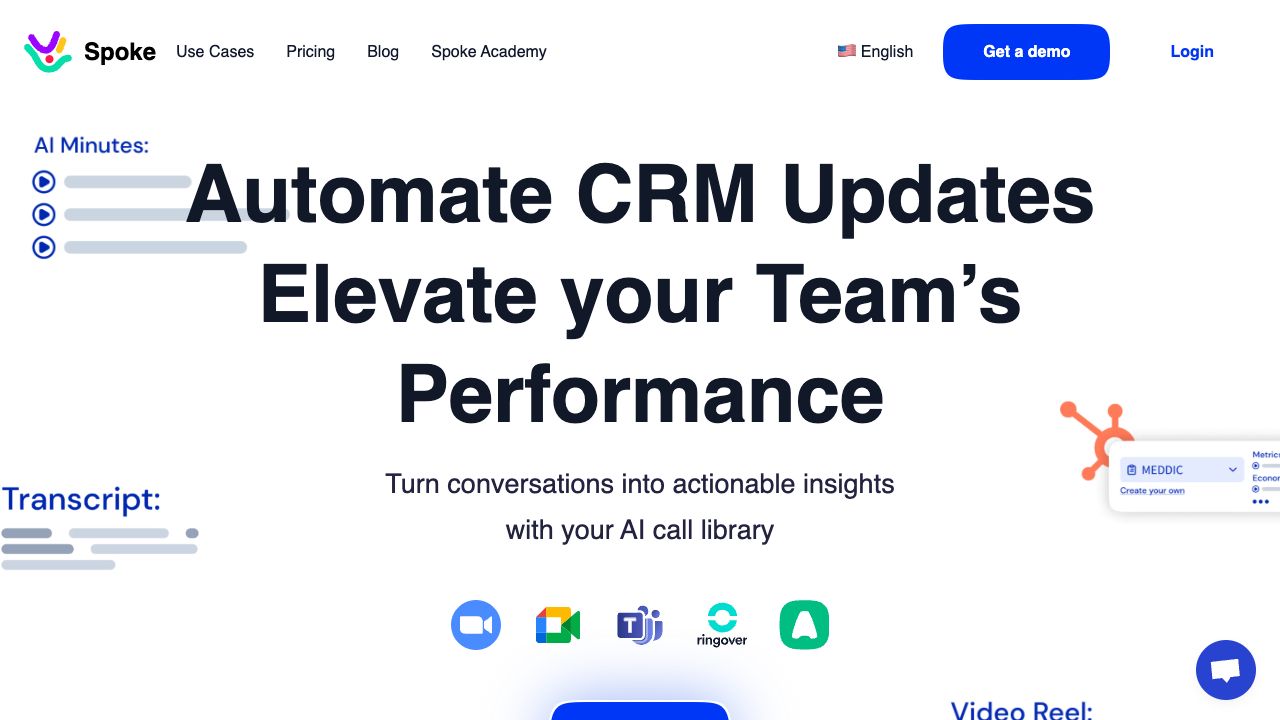 Set up Spoke to automatically extract insights from meetings using AI templates. Ask Spoke questions to receive immediate answers with relevant video clips. Integrate with CRM systems for automatic synchronization of AI reports.