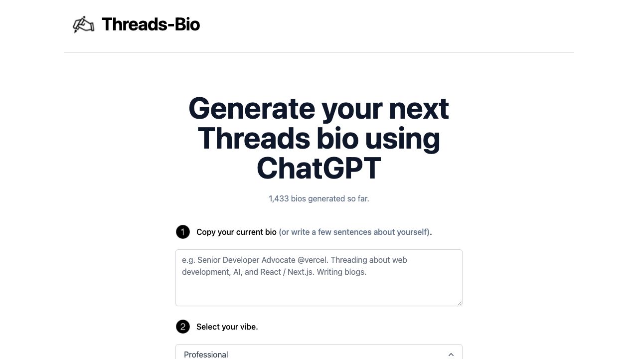 Copy your current bio (or write a few sentences about yourself), select your vibe, and generate your bio.