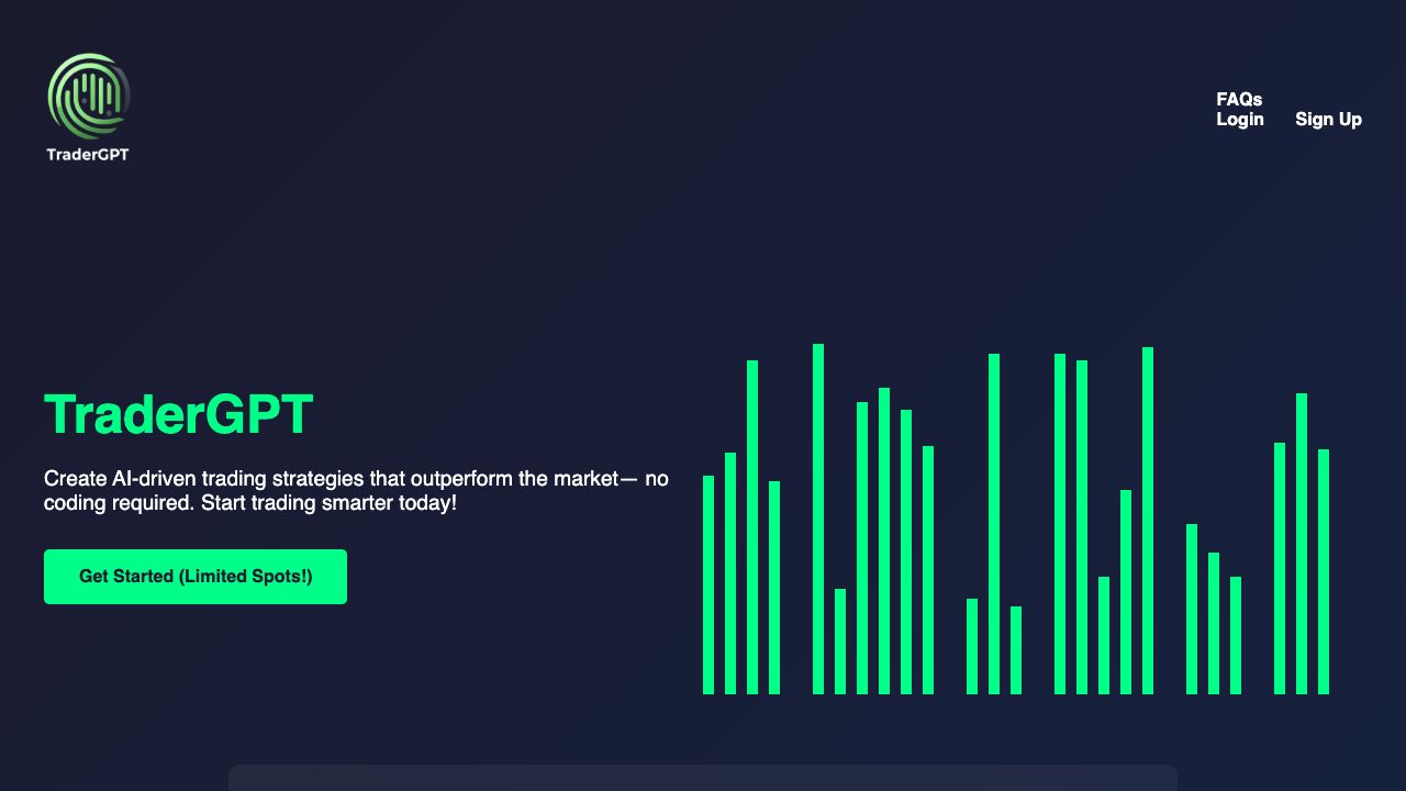 TraderGPT is an AI-powered trading bot that allows users to build, backtest, and deploy their own AI trading strategies for stocks and crypto without any coding skills. The bot automatically finds the optimal strategy for any given prompt and offers one-click deployment.