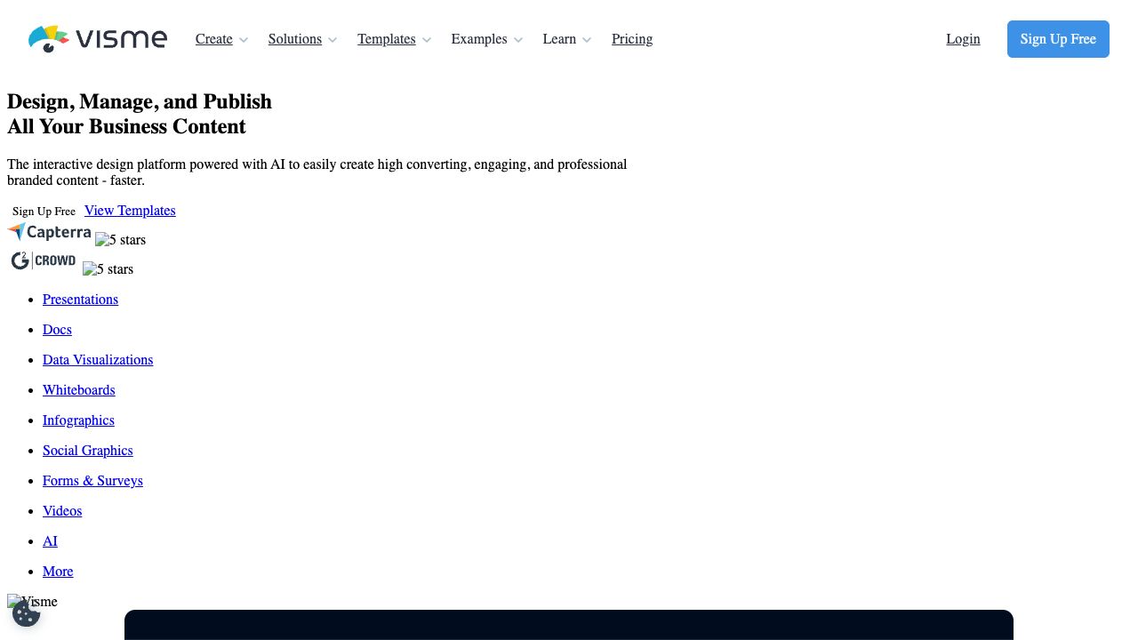 Create professional presentations, interactive infographics, beautiful design and engaging videos, all in one place. Start using Visme today.