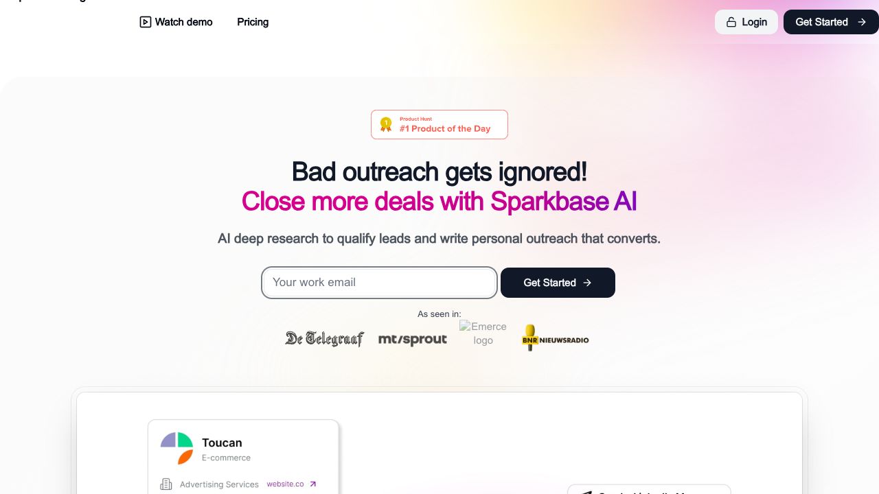 Sparkbase.ai is a predictive AI lead discovery platform designed for digital agencies and B2B SaaS startups. It leverages an AI sales agent named Cara to combine B2B data with real-time signals from the web, news, and social media. The platform aims to help companies accelerate revenue growth by enabling personalized outreach at scale, automating research, providing strategic insights, and booking high-intent sales calls on autopilot.