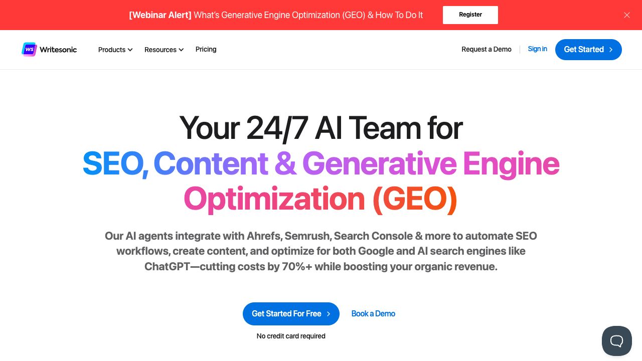 Writesonic is an AI writer and content generation platform designed to create SEO-friendly and plagiarism-free content for various marketing needs, including blogs, Facebook ads, Google ads, Shopify, emails, and websites. It aims to automate SEO and content workflows, reduce costs, and boost organic traffic. The platform offers a comprehensive suite of AI tools, including a paraphrasing tool, text expander, article summarizer, product description generator, and specialized AI Agents for SEO, content, and site audits. Writesonic also features Chatsonic, an AI chatbot with advanced capabilities like Google Search integration, voice commands, and image generation, and Photosonic, an AI image generator.