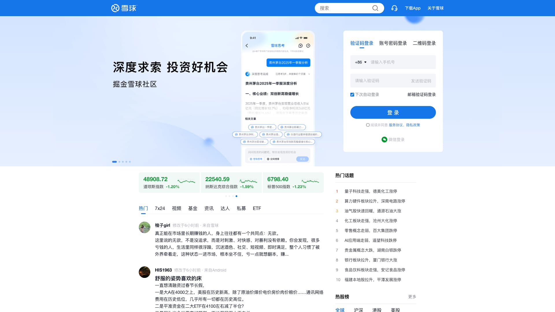 雪球,聪明的投资者都在这里 - 4300万投资者都在用的投资社区和财富管理平台,沪深、港股、美股全球市场实时行情,公募私募股票基金债券免费热点资讯,与投资高手实战交流。支持股票基金在线开户,炒股、投资理财低佣金,交易安全、方便、快捷。提供选基工具、基金估值工具、基金定投、基金排名、指数估值、投资组合供投资者使用参考。