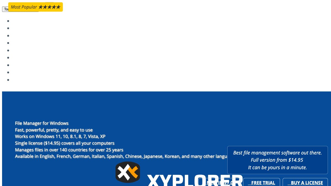 XYplorer is a file manager and explorer replacement for Windows. Fast, powerful, portable, dual paned, and multi-tabbed. License from $14.95.