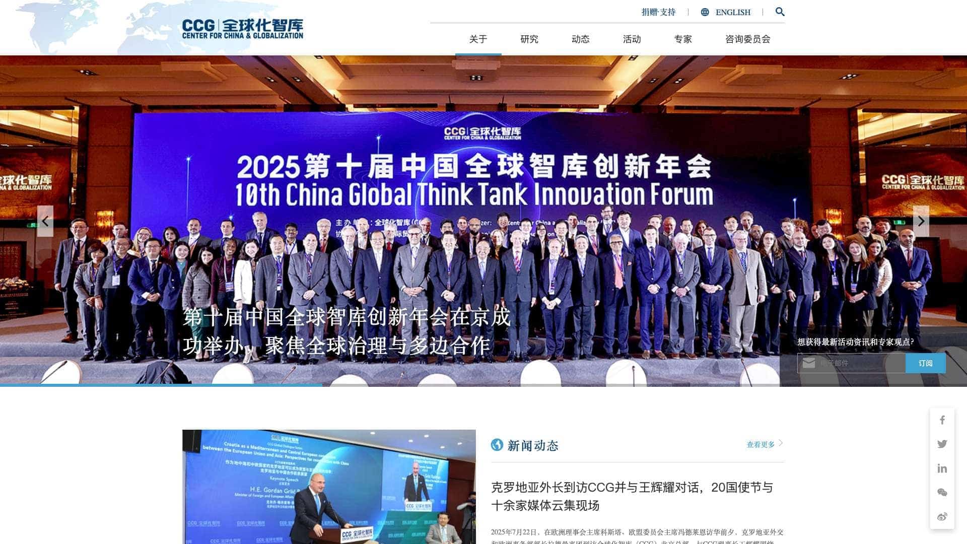 Globalization Think Tank (CCG) is a prominent Chinese social think tank that conducts research on globalization, global governance, international relations, trade, migration, and education. It publishes reports, hosts forums, and engages in policy advocacy to influence global discourse.