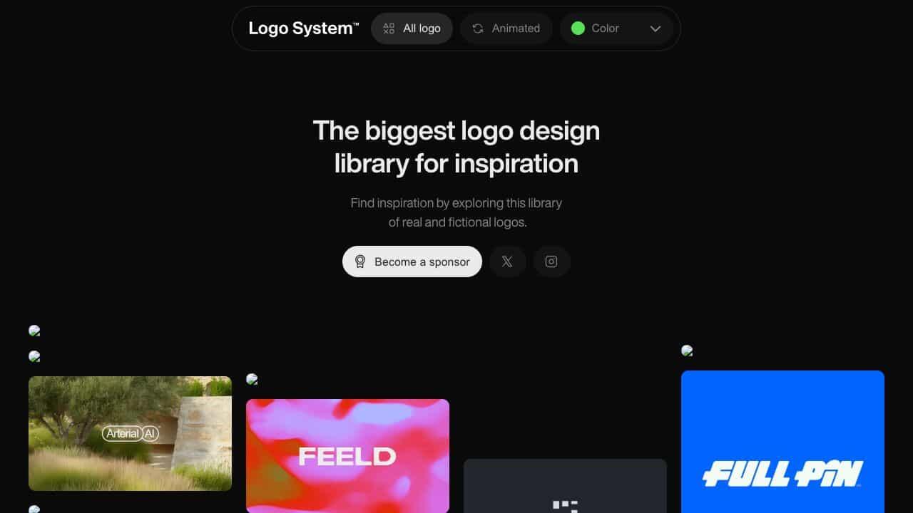 Logo System is a library offering a collection of over 50 logos for design inspiration, including animated, symbol, wordmark, and combined styles, to help users explore creative ideas.