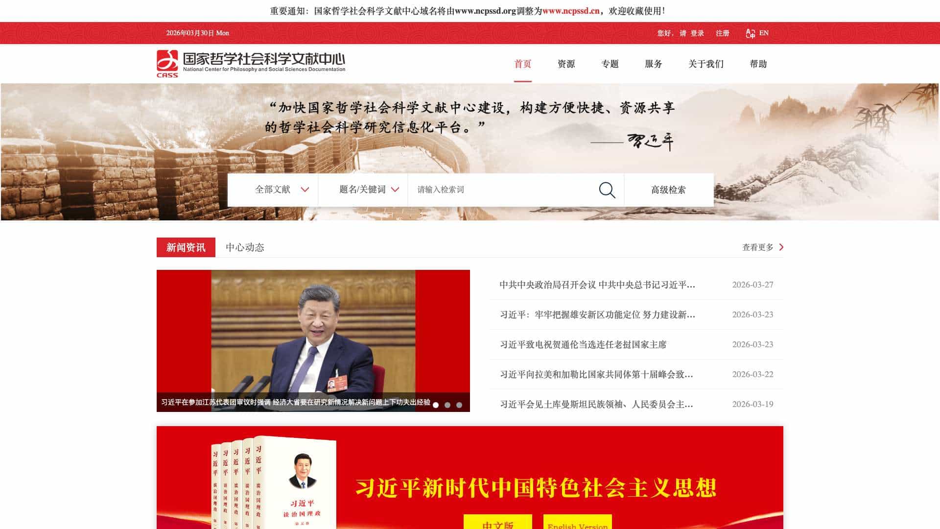 ศูนย์วรรณกรรมปรัชญาและสังคมศาสตร์แห่งชาติเป็นห้องสมุดดิจิทัลและฐานข้อมูลที่นำเสนอทรัพยากรทางวิชาการที่กว้างขวาง รวมถึงวารสารจีน วารสารต่างประเทศ ข้อความโบราณ และเอกสารจัดลำดับความสำคัญ ได้รับการสนับสนุนจากห้องสมุด Chinese Academy of Social Sciences