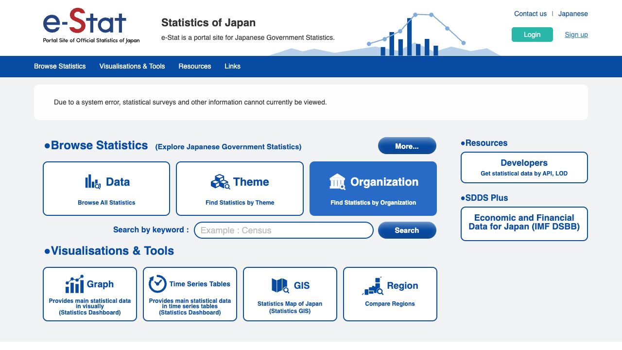 政府統計の総合窓口(e-Stat)は各府省等が公表する統計データを一つにまとめ、統計データを検索したり、地図上に表示できるなど、統計を利用する上で、たくさんの便利な機能を備えた政府統計のポータルサイトです。