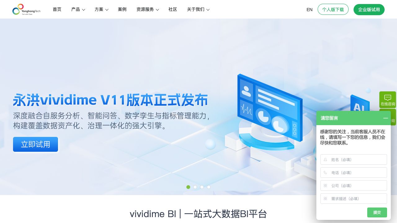 永洪科技主要产品有bi工具、bi报表、bi软件、bi系统、bi数据可视化大屏等大数据分析工具及可视化数据工具,致力于为全球企业提供大数据分析技术产品及服务,依托自主知识产权的一站式bi数据平台形成完善的产品及服务体系。