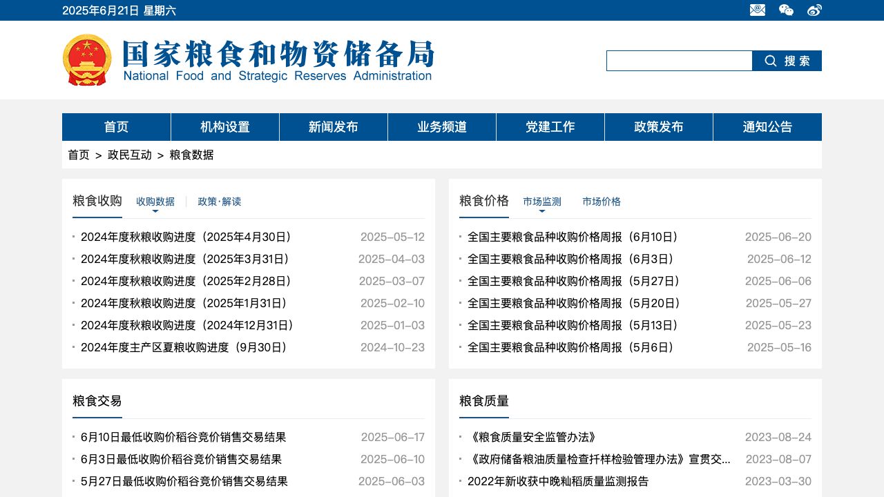 粮油数据-国家粮食和物资储备局