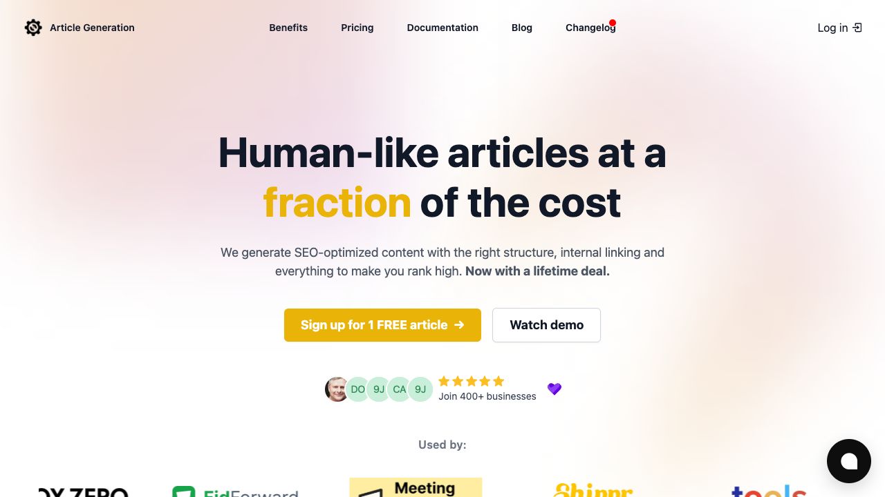 Article Generation is an AI-powered content writer that creates SEO-optimized blog articles for your website. It uses state-of-the-art LLMs to produce content that will make your website’s traffic grow. It offers features like article generation, CMS integration, and plagiarism-free content output.