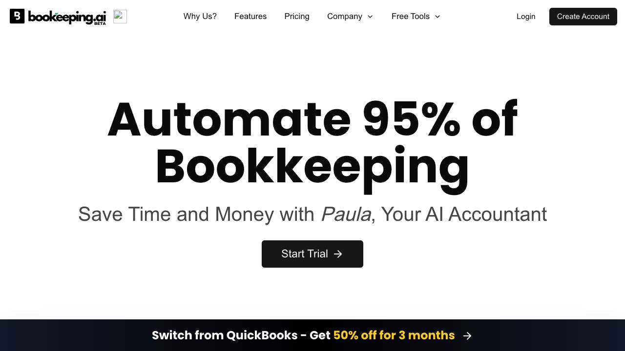 Bookeeping.ai is an AI-powered accounting tool designed to automate bookkeeping tasks. It allows users to chat with an AI assistant named Paula to complete financial tasks such as creating reports, sending invoices, and managing finances. It aims to replace multiple accounting tools and experts by automating 95% of bookkeeping tasks.