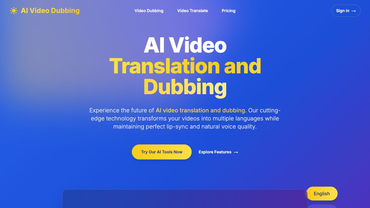 AI Video Dubbing is a professional AI video translation and dubbing service that transforms video content into 50+ languages with natural voices. It offers a fast, accurate, and cost-effective solution for businesses and content creators to break language barriers and expand their global reach. The platform uses cutting-edge AI technology to maintain perfect lip-sync and natural voice quality.