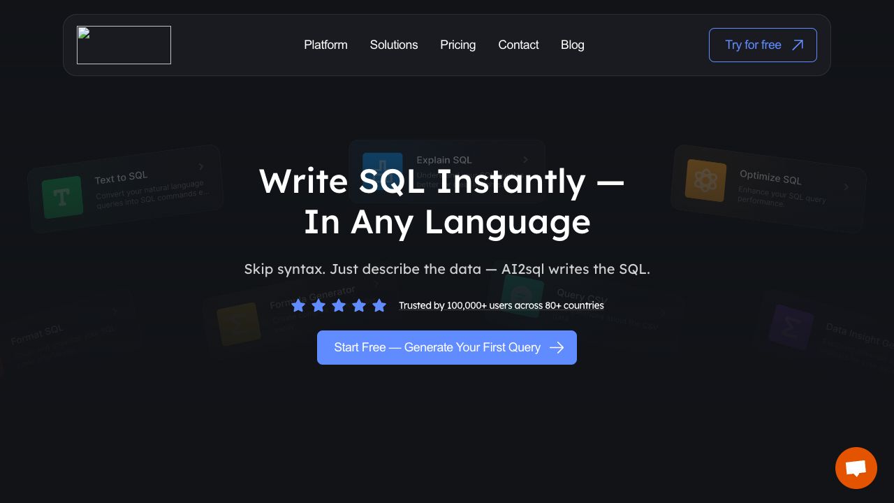 AI2sql is an AI-powered SQL query builder and generator that enables engineers and non-engineers to easily write efficient, error-free SQL queries without needing in-depth SQL knowledge. It transforms natural language into powerful database queries, supports multiple databases, and offers tools for explaining, optimizing, formatting, and validating SQL. It aims to boost team productivity by empowering staff to generate, optimize, and understand SQL queries instantly.