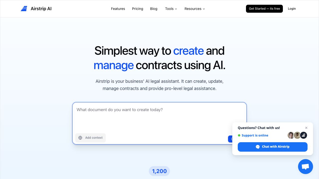 Airstrip is an AI-powered legal co-pilot for startups. It provides compliant personalized legal documents, AI-powered legal assistance, and expert insights to help startups launch confidently. Airstrip offers affordable AI-powered legal documents for business setup, hiring, and client contracts.
