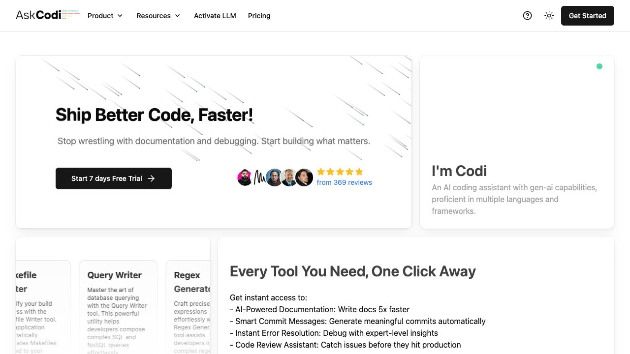 AskCodi is an AI code assistant that improves developer productivity by simplifying app development.