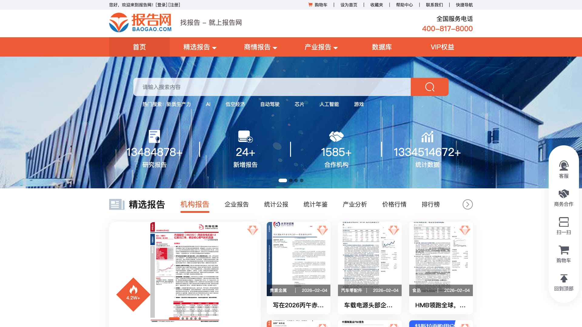 报告网(www.baogao.com)是中国首选商情研究报告平台,为客户提供各行业市场研究报告、调查报告,包括商情报告、机构报告、企业报告、统计报告、产业报告等,找报告就上报告网。