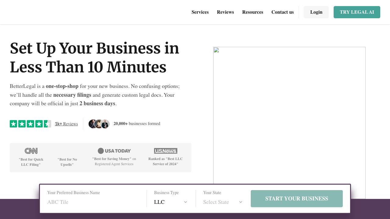 To set up a business with BetterLegal, complete the simple business questionnaire on their website. They will then prepare and file the necessary documents with the state and IRS. Once processed, they will generate and deliver your legal documents via email.