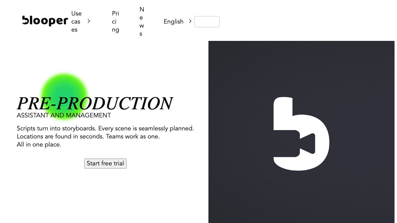 Blooper is a pre-production assistant and management tool designed to streamline video production workflows. It helps users break down scripts, generate storyboards, discover venues, manage team communication, create moodboards, and build pitch decks, all in one platform.