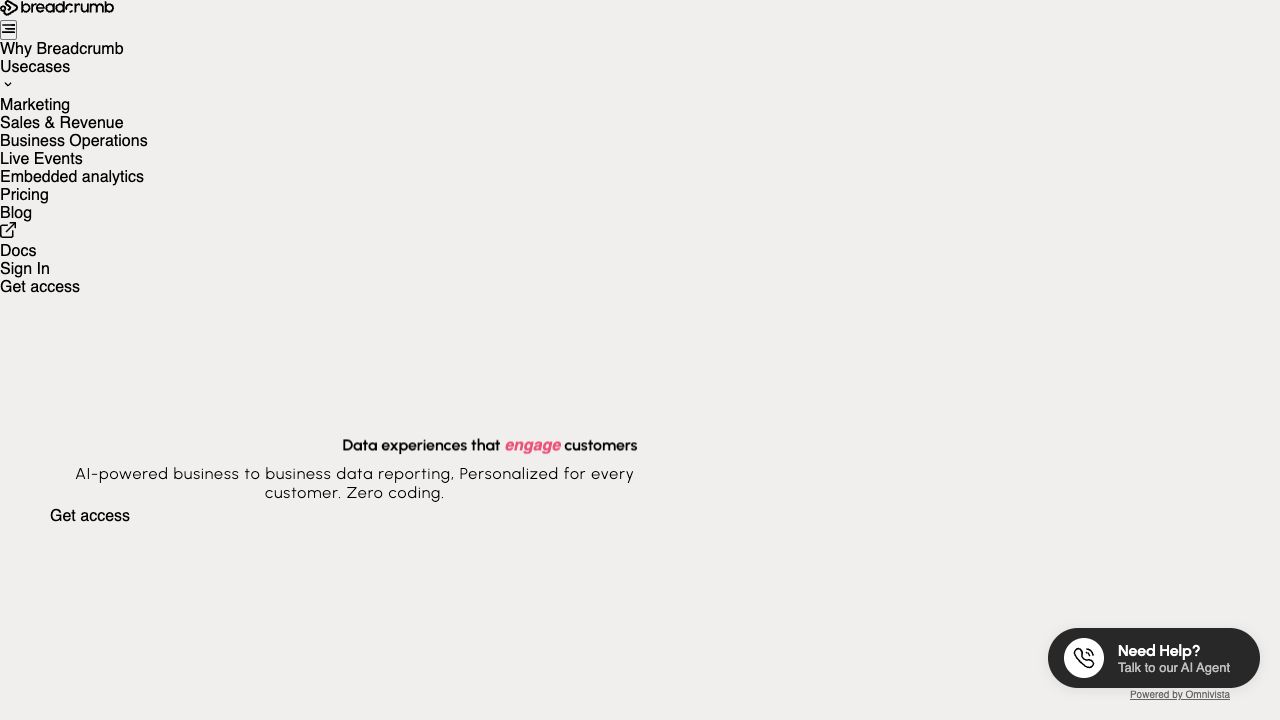 Breadcrumb.ai is a data analytics platform that uses AI-powered agents to help you combine, analyze and turn raw data into embed-ready customer reports. No code or data skills needed. It automates personalized reporting so every account gets the insights they need. Embed analytics into your website, app, or internal tools, giving your team and customers instant access to AI-powered insights.