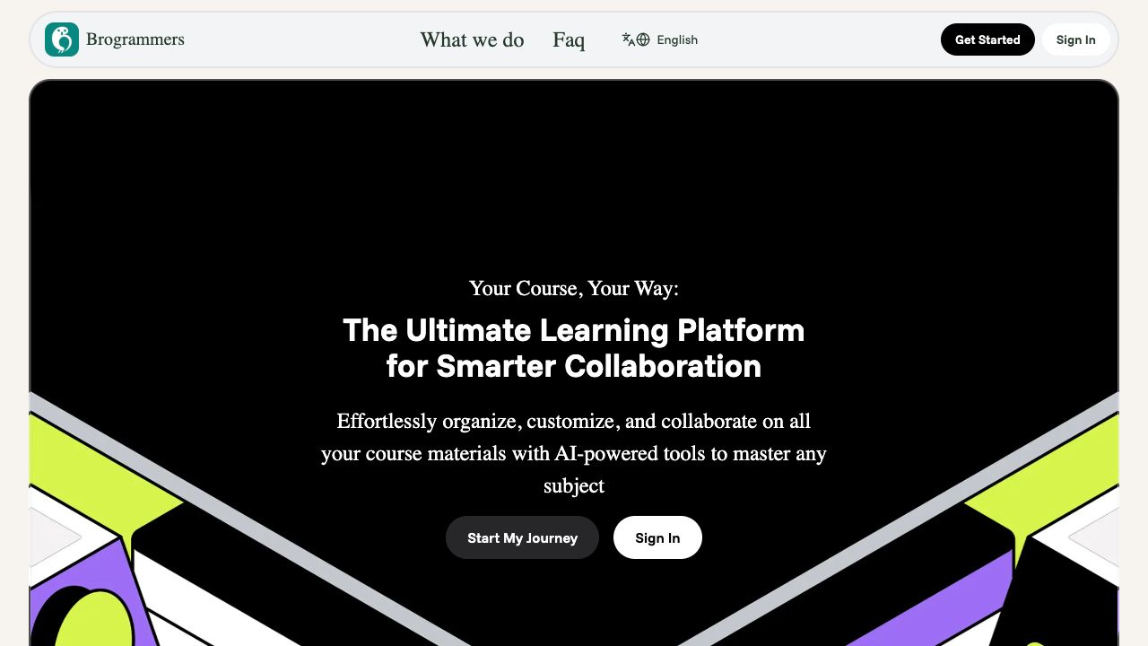 Brogrammers is an educational platform that provides AI-generated study materials, comprehensive development roadmaps, data structures & algorithms resources, placement preparation resources, and an AI buddy for explaining DSA problems and giving hints. It offers flashcards, quizzes, and exclusive premium features for enhanced learning. The platform aims to be the ultimate learning resource for smarter collaboration, allowing users to organize, customize, and collaborate on course materials with AI-powered tools.
