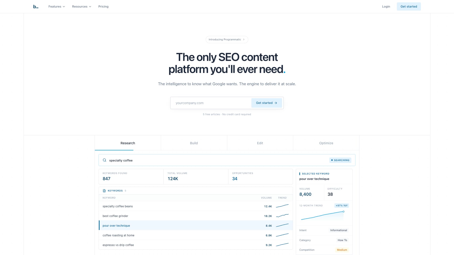 Byword is an AI article writer platform that allows users to generate high-quality, SEO-optimized articles at scale. It enables users to upload thousands of keywords or titles and generate articles in just a few clicks. The platform offers features like custom writing styles, knowledge integration, contextual images, calls to action, meta content intelligence, custom prompting, automatic internal linking, and real-time data integration with Google Search Console. It also provides programmatic SEO tools for building customizable article templates and connecting them to custom datasets.