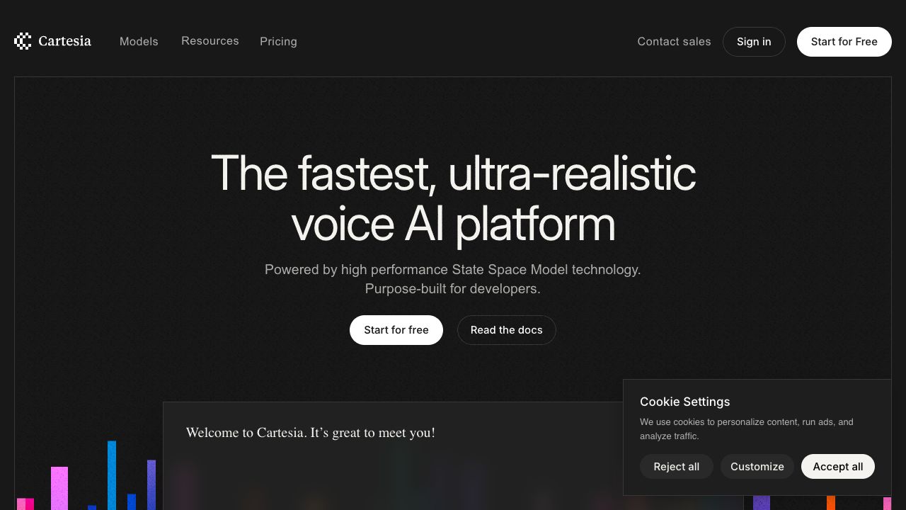 Cartesia is a voice AI platform that offers ultra-realistic voice AI solutions. It provides developers with tools for real-time AI voices, voice cloning, and voice infilling. Cartesia's Sonic model delivers low-latency, high-quality voice AI for interactive voice apps, suitable for real-time voice agents with best-in-class pronunciations. It supports seamless integrations with platforms like Twilio, Pipecat, LiveKit, and Rasa, and offers native speech in 15 languages. Cartesia aims to build the next generation of AI: ubiquitous, interactive intelligence that runs wherever you are.
