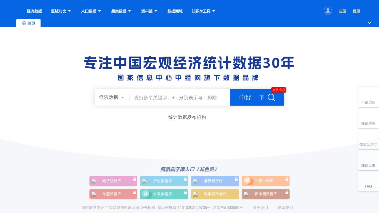 中经数据、覆盖经济统计库、产业数据库、世界经济库、一带一路库、年鉴时序库等经济社会各个领域的数据库,按不同主题组合梳理,帮助用户快速进入所需主题数据库,可按需进行关键字模糊检索,提高数据查询效率;并为用户提供相关的统计制度、标准和常见问题答疑。
