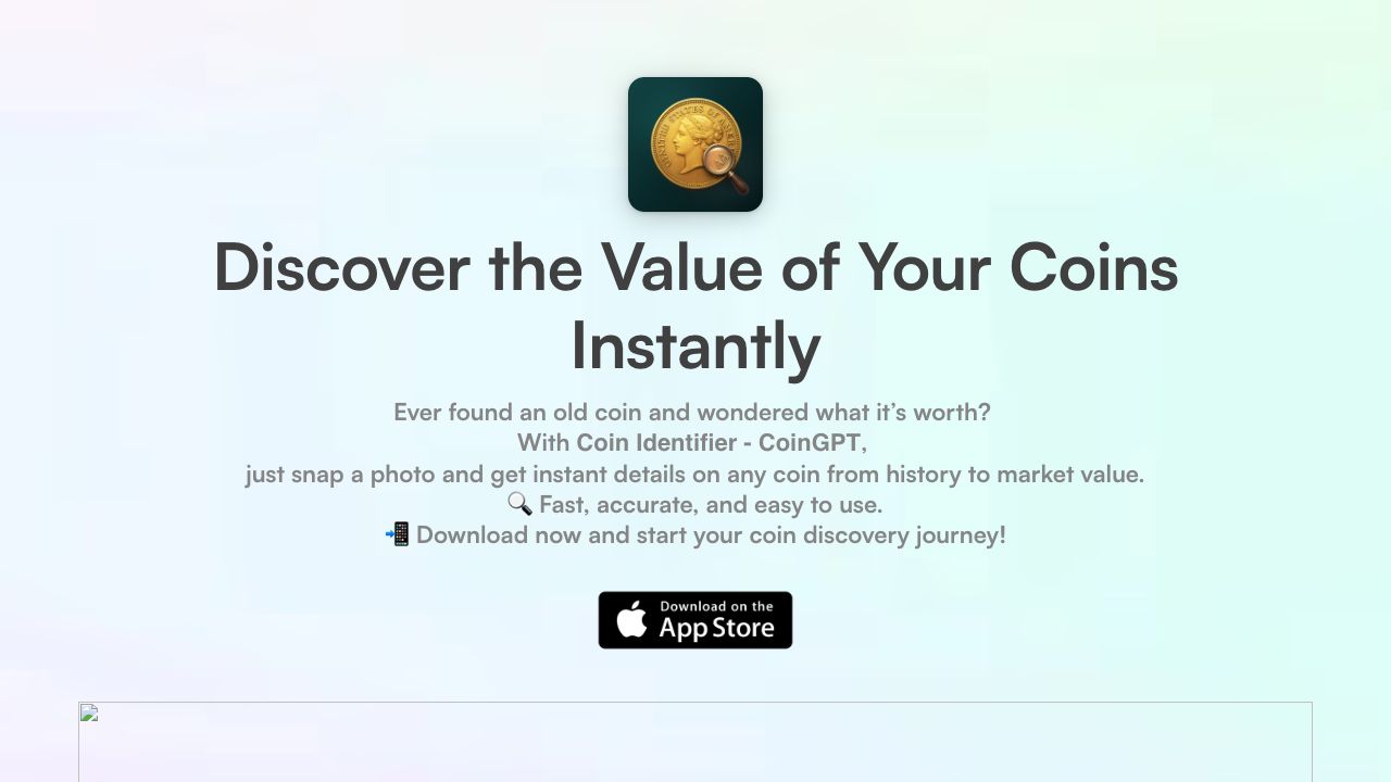 CoinGPT is a free coin value identifier, coin scanner, and rare coin identifier app. It allows users to identify coins, stamps, banknotes, and antiques by picture. The app uses advanced photo recognition to provide details on rarity, value, and history. It also offers access to market valuations and expert analysis.