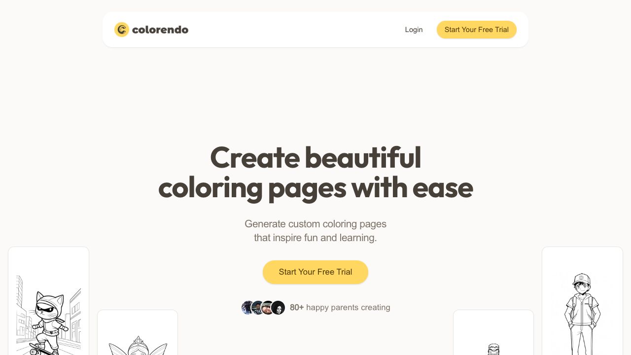 Colorendo is an AI coloring page generator that allows users to create custom coloring pages from text prompts. It aims to inspire fun and learning by transforming words into unique, printable designs suitable for all ages and skill levels.