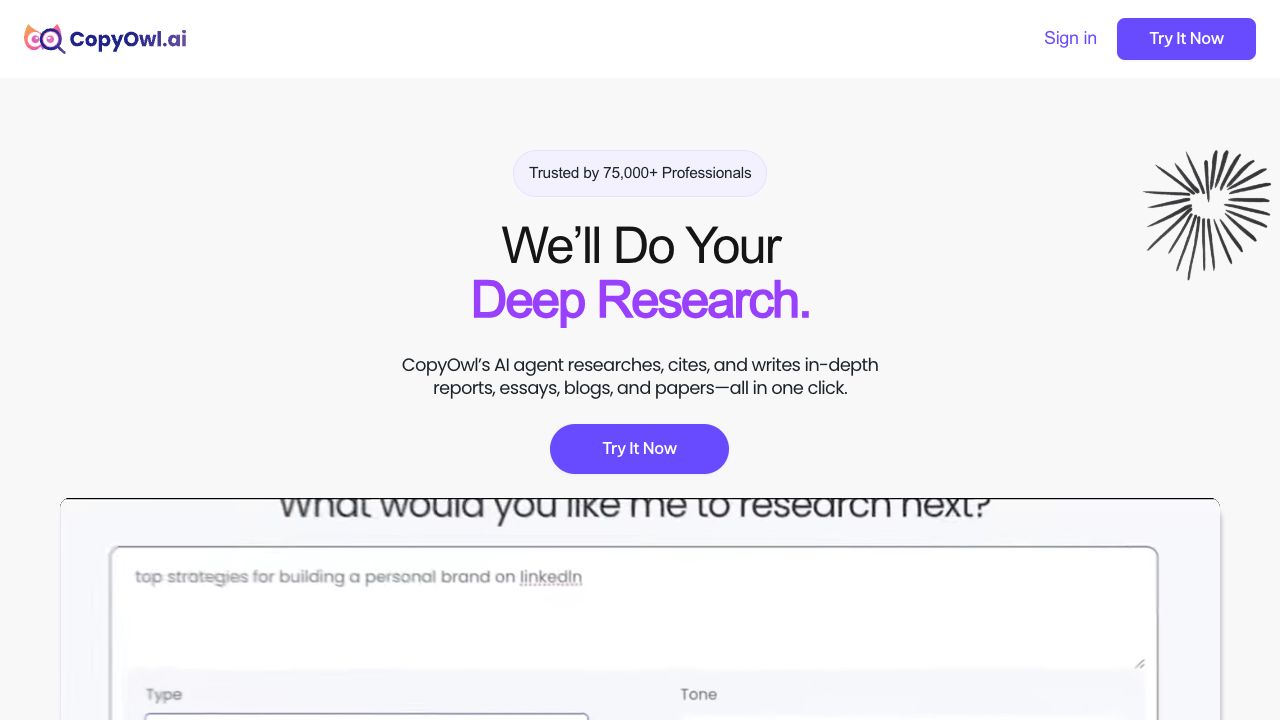 To use CopyOwl, input your topic or keywords, and the AI will gather information from trusted online sources. It then organizes the data into a detailed, ready-to-use research report, which you can download.