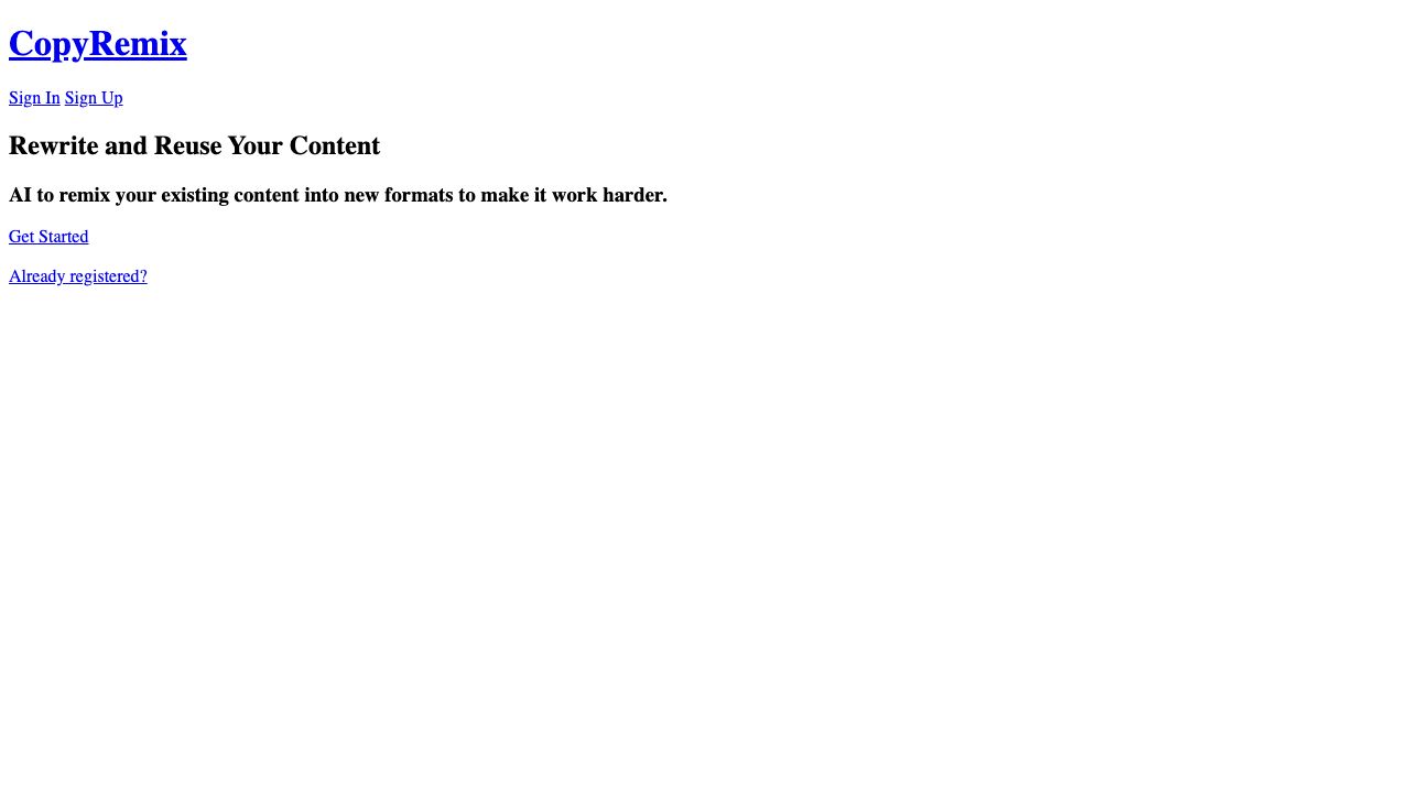 CopyRemix is an AI-powered tool that remixes existing content into new formats, such as turning user testimonials into case studies, tweets into blog posts, or testimonials into social media content. It helps users save time and effort by repurposing their content to work harder across different platforms.