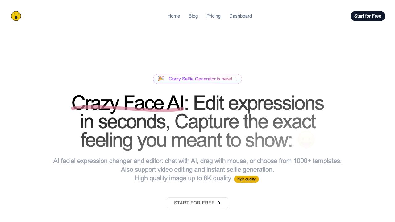 CrazyFace is an AI-powered tool for generating facial expressions for YouTube thumbnails. It allows users to upload a photo and then generate hundreds of crazy Youtube faces based on top Youtubers’ top Viral videos. It also functions as an AI facial expression changer and facial expression editor, allowing users to change or edit facial expressions through AI chat, mouse dragging, or choosing from 1000+ templates. It supports video editing and instant selfie generation.