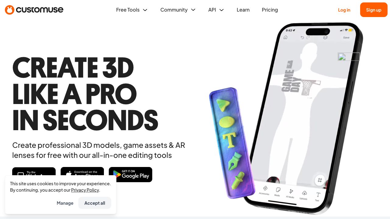Customuse is a platform that enables users to create, share, and explore custom designs, specifically focusing on 3D clothing templates for games and apps. It provides tools and a community for designers, artists, and enthusiasts to bring their ideas to life, create professional 3D models, game assets, and AR lenses.